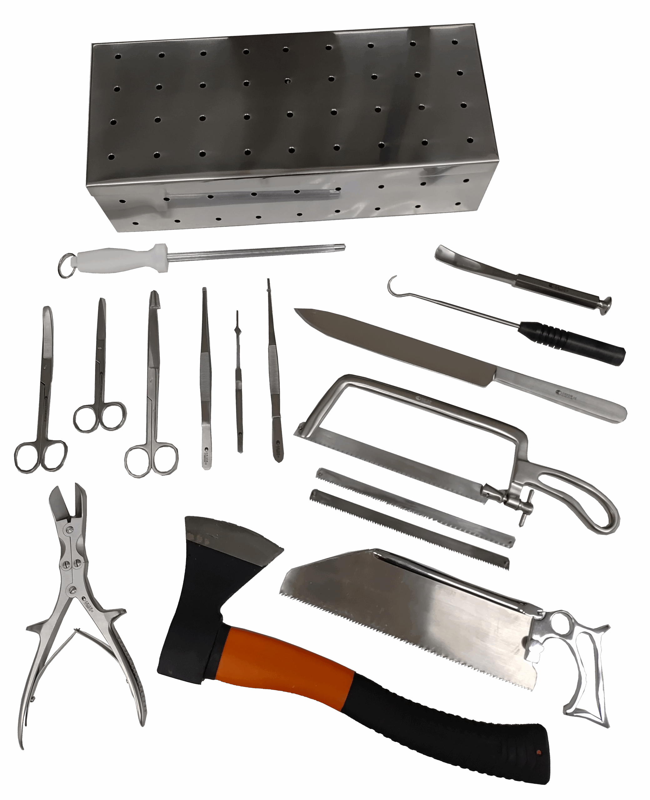 O Kit de Necrópsia reúne instrumentos essenciais para dissecação e análise anatômica. Produzido com materiais de alta qualidade, oferece precisão e segurança em procedimentos laboratoriais.